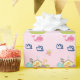 Papper med en söt daghemsbild i stil, med ett ark fyllt med vilda djur och en fjärilspuss som flyger över och en vänlig valgspusning vatten nedanför. Vissa blå moln flyter på. Ange en ljus rosa figurbakgrund.