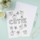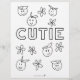 Önska de små gästerna vid din babydusch med vår Cutie Coloring Page. På den här sidan finns "Cutie" i ord i fet brev, perfekt för färgning. Omgivande av texten är en förtjusande liten cutie orange med sött ansikte, tillsammans med charmerande blommor till färg. Den här aktiviteten är säker för behållan av barn som har underhållits och ger dig roligt till evenemanget. (För bästa resultat väljer du tunn projektionsyta pappert vid beställning.)