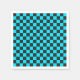 A checkerboard pattern with alternating black and cyan squares. The repeating geometric design creates a balanced, rhythmic visual effect.