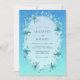 Denna design har en livfull gradientbakgrund som övergår från en djup himmelblå till en mjuk akvafärg. En delikat arrangemang av akvarellblommor och små blad omger mitten och skapar en lugn stämning. Paletten domineras av svala toner, inklusive turkos och teal, som frammanar en frisk vårstämning. Subtila blomsterdetaljer som liknar äppelblom ger en naturlig elegans till det botaniska konstverket.
