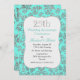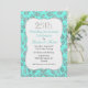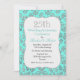 Elegant 25-års bröllopsjubileum fest inbjudan gjord i en cyan aqua och silver ton damaskus mönster. Grafik av en silver glittrig ser ut ramad vit text område har silver ton grafisk text, längst upp, läsning 25:. Anpassa resten av texten för din jubileumsfirande.