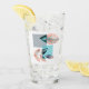 Modern design med fyrkanter och löv i kontrasterande cyan, rött och orange färg.