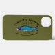 En blåtonad Sockeye Salmon med texten "Cyanotic Salmon Pub & Grill Kenai, Alaska" och "Combat Fishing Rest and Relaxation". Laxfisket är mycket populärt, alltför populärt i Alaska. Föreställ er hundra sportfiskare, ungefär skuldra till skuldra, som i båda banker i en ström försöker undvika att korsa linjer med alla andra i hopp om att landa en stor lax. Det är stridsfiske. Efter en dag tar du lite R&R på den mytiska cyanotiska laxen i Kenai. Fiskeberättelser där..Ja.