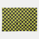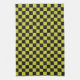 Yellow and black checkerboard pattern with alternating squares. The bold contrast creates a striking, geometric visual effect.