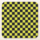 Yellow and black checkerboard pattern with alternating squares. The bold contrast creates a striking, geometric visual effect.
