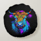 Cyberpunk Colorful Ai Highland Cow Rund Kudde