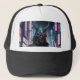 Den här intensiva bilden visar en hotfull demon samurai, med en futuristiska, en mörk och en mask med rött ögon och horn. I en nybelyst stadsmiljö inspirerad av cyberpunkestetik står tecknet mitt i många belysta tecken och symboler, vilket antyder ett starkt, högteknologiskt citysslande.