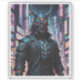 Den här intensiva bilden visar en hotfull demon samurai, med en futuristiska, en mörk och en mask med rött ögon och horn. I en nybelyst stadsmiljö inspirerad av cyberpunkestetik står tecknet mitt i många belysta tecken och symboler, vilket antyder ett starkt, högteknologiskt citysslande.