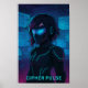 Gå in i en högteknologisk cyberpunk-värld med denna djärva, anime-stil-grafik med en futuristiska kvinnlig hackare. I mörken kostym, med ljusblå accenter och hjälm med en digital visare, är hon omgiven av skärm fylld med kod och tekniska diagram, skapande den ultimata hackerestetiska bilden