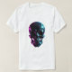 En edgy, futuristiska skallgrafik med reflekterande, glasliknande yta och vibrerande neon rosa och blå ljusreflektioner, skapande ett cyberpunkestesiskt.