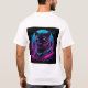 En digital rendering av en cybernetisk Svart Panter omgiven av futuristiska neonljus. Den djärva, rosa månen och intrikata kretslopp förmedlar en unik blandning av natur, teknologi och surrealism i en hypnotiserande stil.