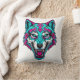 Cyberpunk Neon Wolf - Synthwave Robotic Animal Kudde