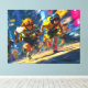 Cyberpunk Runners Sprint Neon Rain City Action Art Canvastryck