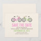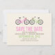 Inbjudningar till snyggt och roligt är en vacker illustration av två cyklar i mjuk pastel färg perfekt för vår eller sommar bröllop. Använda dessa för bröllop, möhippor, möhippor, spara datum meddelande, förlovningsfester och mer!