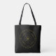 Cycles all-over print shoulder and cross-body tote bags. Cycles is a Germanic design created by Anna M. Asbury and consists of a black background with an Aegishjalmr in the center and encircled by Elder Futhark Runes. The design is enclosed in a diamong with the Ingwaz Rune, flanked on all four sides with a bind rune, and encircled by the Jera and Ingwaz Runes.