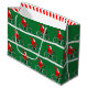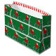 Creative bicycle themed Christmas holiday gift bag or party favor featuring funny Santa cyclist cycling on a bike.