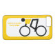 Cyklist som kör sin cykelmodell iPhone 8/7-anpassningsbar visar en minimalistisk ikon av en svart cyklande silhuett med gult överst och texten på vit bakgrund med gult gräns. Den här coolan är en mall och är helt och hållet anpassade.