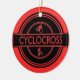 Denna CX smyckar har två cyclocrossryttare som insida av koncentriskt cirklar.