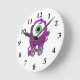 Adabel cyklops monster med en stort öga som delvis täcks av en styvknall och med en stor bucktand i Halloween-lila och grönt och vinkar hej. En söt, festlig gåva.