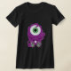 Adabel cyklops monster med en stort öga som delvis täcks av en styvknall och med en stor bucktand i Halloween-lila och grönt och vinkar hej. En söt, festlig gåva.