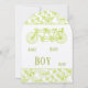 Cykeln byggt för Två med säte i baby gör tre. Inbjudan till vintagens Retro Lime Bicycle Baby Shower