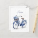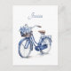 Vattenfärgning av en cykel med en basket-fullt av blommor i Delft Blue färg