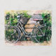 Cykel och korg i trädgården vykort