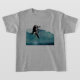 Ett djärvt cykeltrick i mitt- luft, når att ha ridit upp ett brant ramphopp. Livliga blåttfärger i en coola och en rolig konstnärlig målad stil. Tillfoga ett namn, eller affären som ska personifieras för ytterlighetbmxentusiaster, sport shoppar ägare Etc.