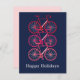 Det här helgdag är underbart för cykelbutiker och alla cykelrelaterade företag. Tre cyklar i röda nyanser har rött och vitt candy cane rand på ram. På baksidan finns ett Julhälsningar och ett namnteckning för ditt företag namn. All text är helt anpassade.