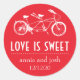 Cykeln Bygger för två Kärlek är sötetiketter (röd/vit)...Den här roligten, eleganten, klassiskt och romantiskt kärlek är ett sött tack som du märker som ett tillägg till perfekten till ditt tack för ditt romantiska målbröllop. Perfekt till bruden och brudgummen som har sitt bröllopsmottagning på en romantisk plats. Roligt och chic kärlek är söta etiketter/klistermärken som är idealiska för bröllopsfavörer eller en fullt av choklad, dikor, läppar, flis och socker från bröllop. Låt dina gäster ta med sig en behandling hem med dem för att minnas din bröllop. Utformningen har en roligt segelbåt. Underbar för vilken brud och grupp som helst som kärlek ska ta långa cykelrider. Underbar idé även för en möhippa- eller bachelorettfest. Fullt anpassade...Byt bara ut namn och data och redot är att använda dina klistermärken. Finns i ett stort antal färg för att matcha bröllop färg. Besök WindyCityStationery.com för hela raden "Cycle Byggt for Two Kärlek Is Sweet" i ett stort antal färg, samt matcha "Bicycle Byggt for Two"-porten frimärke, tack, returetiketter, spara datumen och mycket annat.