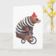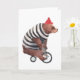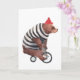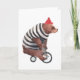 Den här konstruktionen har en vattenfärgad illustration av en björn på en cykel med en strimlad svettare och röd hatt.