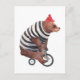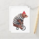 Den här konstruktionen har en vattenfärgad illustration av en björn på en cykel med en strimlad svettare och röd hatt.