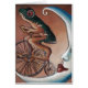 En groda tar en månskenritt på en gammalmodig cykel. Dess en afton för bränd sienna.