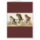 Förtjusande vintageillustration av två katter och en valp som rider på deras cyklar med ryggsäckar.