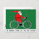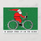 Helgdag cykelkonstruktion med tomten som kör en cykel ovanför ord: O, vilken roligt det är att köra