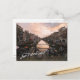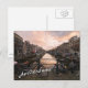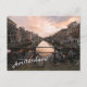 Vykort för vissa cyklar som är låsta pub i en bro över Prinsengracht-kanalen och som är inklädda av traditionella kanalhus vid solnedgången i Amsterdams stadskärna i Nederländerna med texten "Amsterdam!".