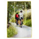 Två cyklister i tävlan som njuter av Wales land-körfält. Vattenfärg.