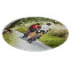 Två cyklister i tävlan som njuter av Wales land-körfält. Vattenfärg.