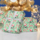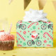 Kreativ-helgdag-presentsäck med tecknad-cykling på en cykel omgiven av julgranar.