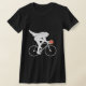 Cykelbruden har en vit kvinnlig cyklist med en flytande möhippa som sitter fast vid hjälmen och en blombukett i handen.