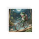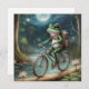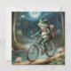 Groda som kör sin cykel nattetid under fullt omgiven av brandflugor