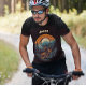 Cykling Life, återmålning i orange och blått av en cyklist som kör genom bergen och skogen med sol i bakgrunden