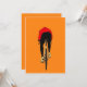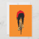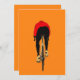 En dynamisk illustration av en cyklist som fångas i rörelse, som ställs in mot en bakgrund med fet orange. Denna moderna och minimalistiska utformning är perfekt för cyklingentusiaster och älskare, som för energi och rörlighet till alla platser.