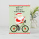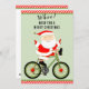 Kreativets helgdagskort för cyklist med en rolig tomttcykling på en cykel.