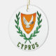 Ta med en symbol för fred och gammalt kulturarv till din semesterdekoration med denna keramiska prydnad med Cyperns statsvapen. Om du vill fira dina cypriotiska rötter, hedra en resa till "Aphrodites ö" eller ge en meningsfull gåva till diasporan, är denna prydnad ett vackert sätt att visa Cyperns anda året runt.