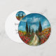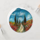 Toscana landskap,färgglada ,livfulla ,uttrycksfulla italienska landsbygden,gröna kullar,blå himmel,moln,vallmo fält,blom fält,akryl målning i ljust gul,orange,röd,blå färger på rund duk .