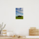 Lodrät poster utskrift av en grupp cypress träd i ett landskap med grönt backe och gula blommor under vackra vita moln nära Torrenieri i Val d'Orcia (Orcia-dalen) i Toskana, Italien.