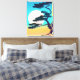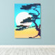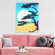 Canvas i en japansk inspirerad silhuett från en cypress träd, som ramar in ett fullt, mot ett akvarium och korall orange himlar