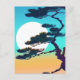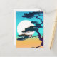 Vykort i en japansk inspirerad silhuett av en cypress träd, som ramar in ett fullt, mot ett akvarium och korall orange himlar