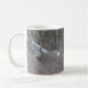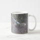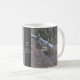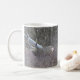 Mula hjortbock med text på mugg. Denna stora mula hjortbock letade efter hondjur i buskarna längs en bäck.